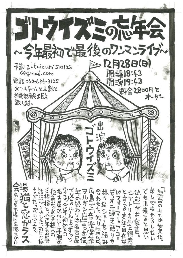 「ゴトウイズミの忘年会~今年最初で最後のワンマンライブ~」@猫と窓ガラス